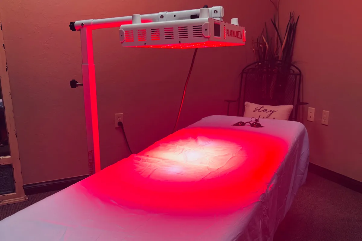 Red light therapy uses targeted light wavelengths as part of a wellness-focused approach to support relaxation, circulation, and overall cellular support. Sessions are gentle, comfortable, and often used alongside other wellness services.